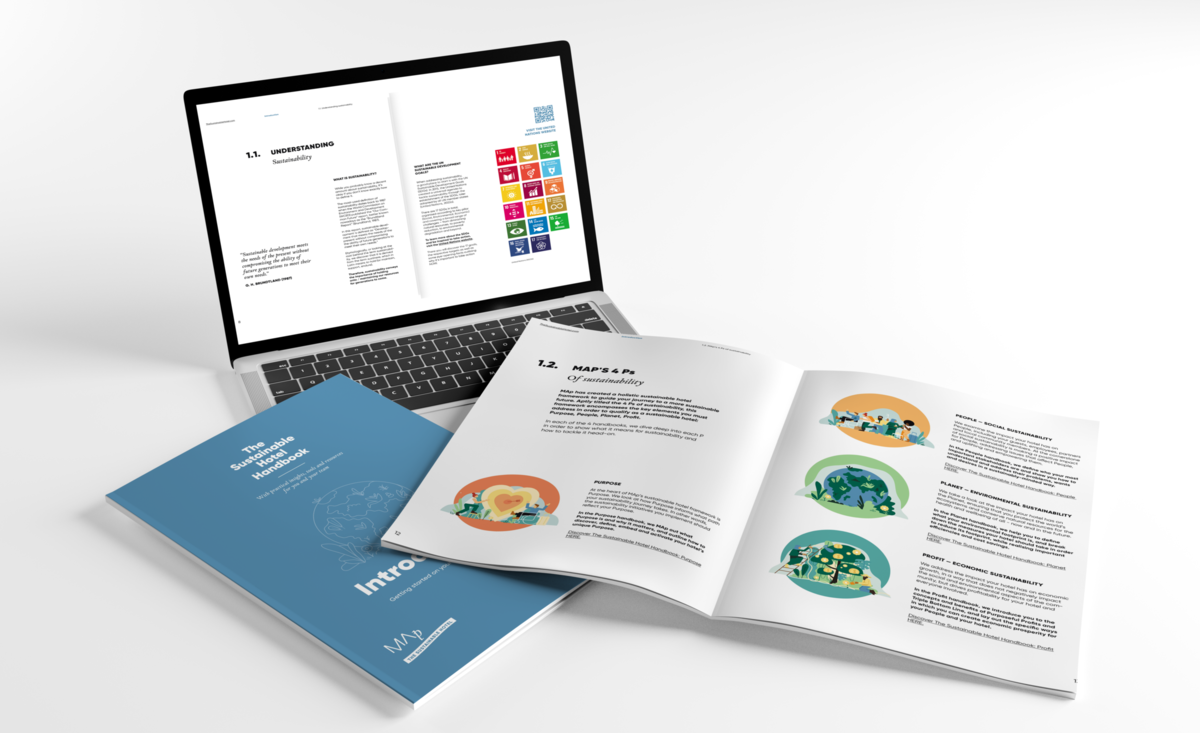 With our Introduction handbook, we give you all the information you need to find your way through the jungle of myths and misinformation when it comes to sustainability. In order to do that, we introduce you to the United Nation's 17 SDGs and MAp’s 4 Ps of Sustainability. We also highlight what makes a sustainable hotel, why it's relevant, and the benefits it brings for your hotel.
